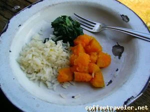 Acompanhada de abóbora e arroz, formou-se uma bela e apetitosa composição…