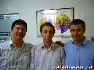 Nesta foto, da direita para a esquerda, tirada durante o exame para Juízes Certificados SCAA pela ABIC, está o Mané, um dos poucos titulares da SCAA na função de examinador, Almir Filho, Diretor da ABIC e do Café Toko, e eu, seu Coffee Traveler.