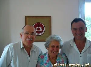 Abaixo, Dona Marianinha ladeada pelos filhos administradores, Sebastião, à esquerda, e Márcio Heleno, à direita: