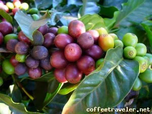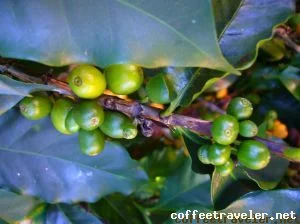 2. Nesta próxima foto, observe os grãos verdes em internódios (de onde saem os botões de flores que se tornarão frutos ou, dependendo da resposta fisiológica do cafeeiro, uma nova ramificação) que obrigatoriamente têm de ser colhidos agora, pois sua maturação será muito tardia.