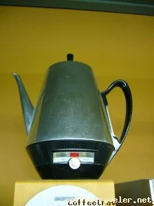 Esta é uma cafeteira elétrica da Sunbeam de alumínio e cabo em baquelite.